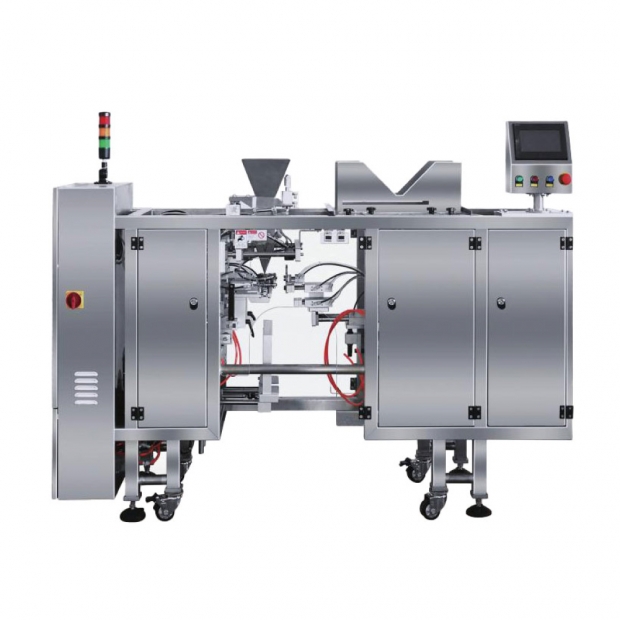 兩用版本可支援插角袋、拉鏈袋與立站袋,適合代工廠與多品項生產單位,換線迅速,生產彈性高。機體採食品級不鏽鋼製造,維護簡易並可選配充氮、除塵或金檢模組。