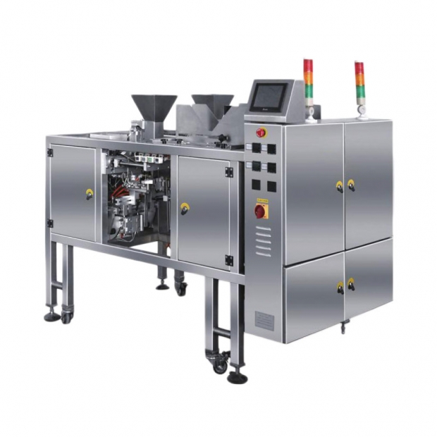 包裝材料採用預製袋形式,袋型完整、封口品質高,有助於提升最終產品外觀規格與陳列效果。適用範圍包括多層複合膜、單層 PE/PP 薄膜與紙質預製袋,可廣泛應用於食品、調味品、休閒零食、穀物、寵物食品與日化產品的包裝。設備可根據需求搭配多種給料機,如粉末螺桿計量機、液體活塞泵、黏稠膏體泵或多頭電子秤,靈活對應不同物料特性。
